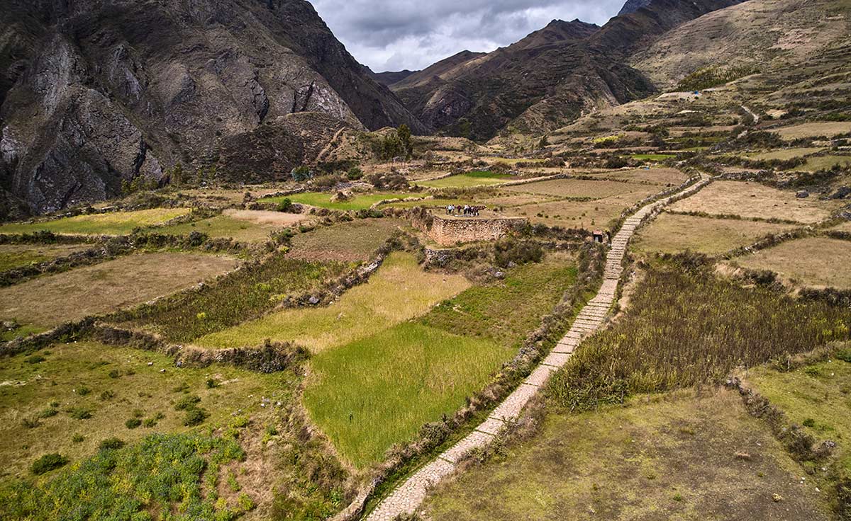 Desde las partes altas del centro poblado se puede ver que el camino es el hilo conductor entre los distintos pisos ecológicos del Valle de Tambillos (emplazado entre los 2300 y 4600 msnm). Como si fuera una cicatriz que atraviesa decenas de parcelas productivas. Ricardo Chirinos, arqueólogo supervisor de las áreas inscritas en la Lista de Patrimonio Mundial del Qhapaq Ñan, refiere que esta zona tiene al menos 2000 años de desarrollo agrícola. Mucho antes que los Incas, estaban los Pincos.
